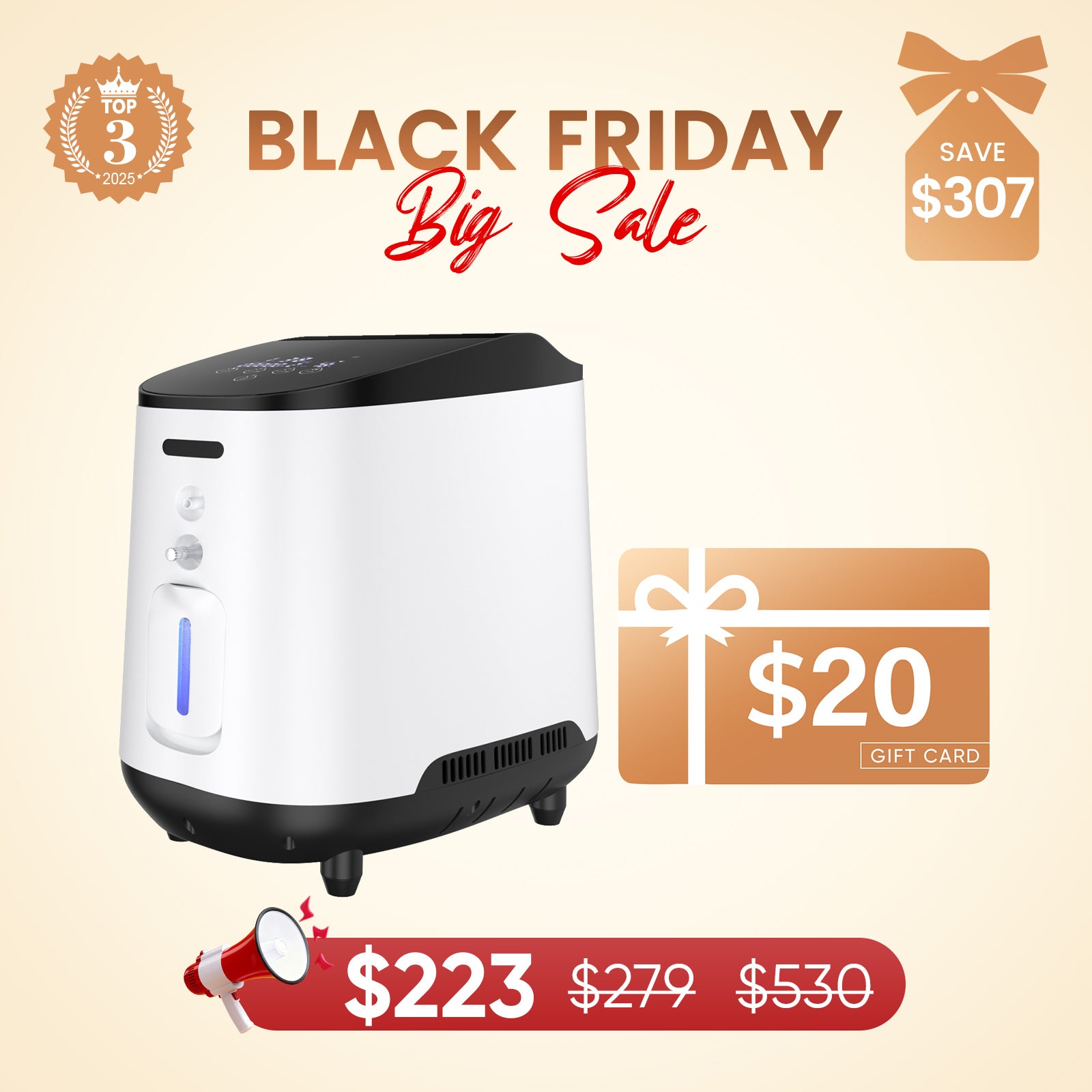 The home oxygen concentrator has a minimalist appearance with a small size, only 12.12 lbs, satisfying users’ needs in different types of living spaces, such as bedrooms and living rooms. -